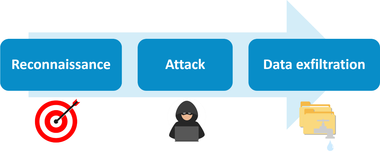 Data breach caused by cyber attacks usually contains three main stages, including reconnaissance, attack and data exfiltration.